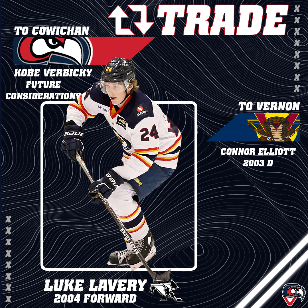 The Cowichan Capitals have acquired 2004 born forward Luke Lavery, the rights to 2003 born forward Kobe Verbicky and future considerations from the Vernon Vipers in exchange for 2003 born defenceman Connor Elliott on Thursday.